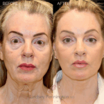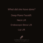 This patient underwent a lateral brow lift, upper and lower blepharoplasty, deep plane facelift, structural neck lift, lip lift, fat grafting, and laser resurfacing to lift and restore facial structure, brighten the eyes, and smooth skin for a natural, refreshed result.