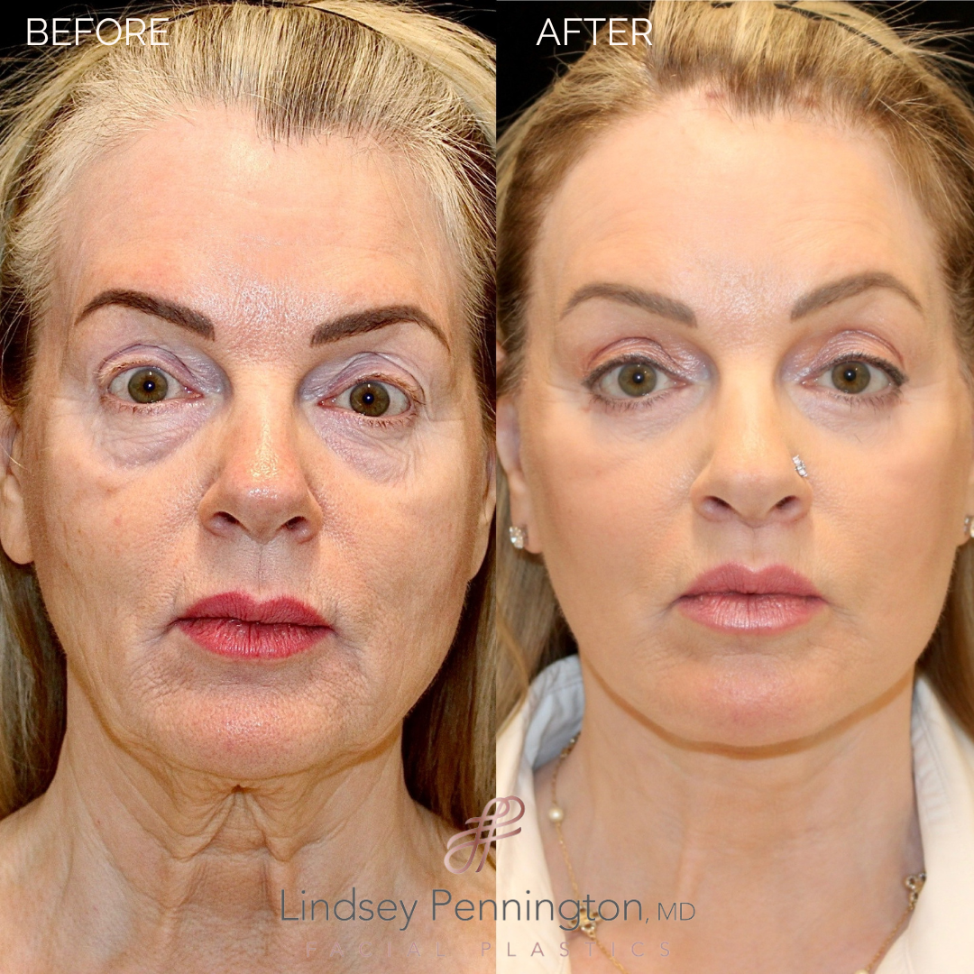 Another happy facelift patient! This beautiful patient in her early 50s presented to Dr. Pennington with concerns of constantly feeling she looked aged, tired and angry.