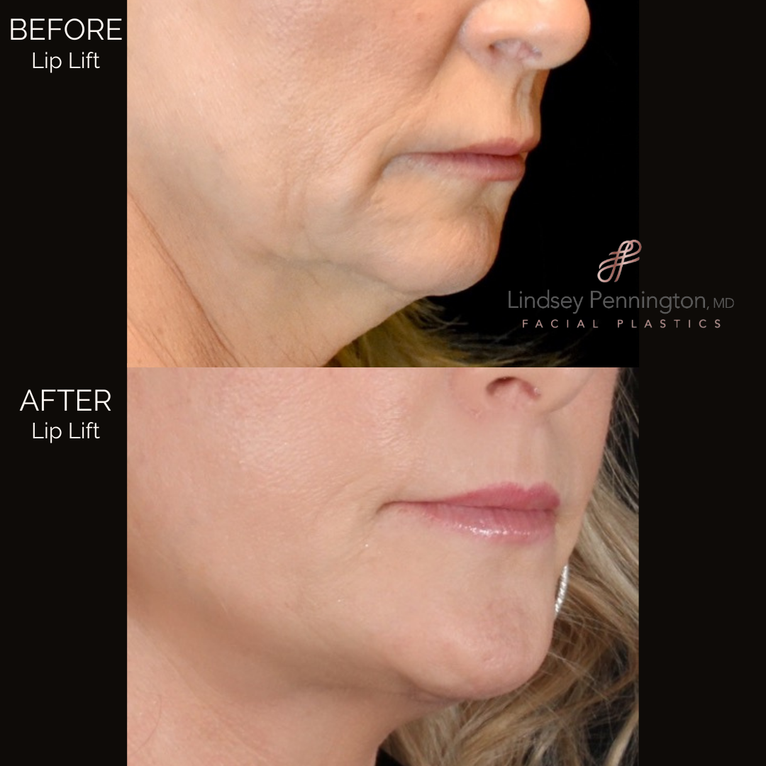 This patient underwent a lip lift to enhance her natural lip shape, restore balance to the lower face, and achieve a more youthful, refined appearance.