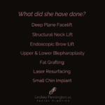 This patient in her mid fifties underwent a deep plane facelift, structural neck lift, endoscopic brow lift, upper and lower blepharoplasty, fat grafting, a small chin implant, and laser resurfacing. Her treatment plan was designed to lift and support facial structures, restore youthful volume, and improve skin texture and tone. Each procedure worked in harmony to create a naturally radiant result without compromising her unique features. From subtle volume restoration to skin smoothing and contour refinement, every detail was thoughtfully addressed. The outcome is a glowing, confident appearance that reflects both technical precision and artistic vision.