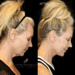 At just 6 weeks post op, this patient in her late 50s is already seeing incredible results from her full facial rejuvenation including a deep plane facelift, neck lift, blepharoplasty, brow lift, lip lift, fat grafting, and laser resurfacing.