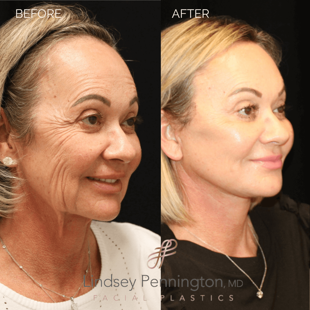 This patient in her early 50s wanted to restore a more youthful, energized look and achieved beautifully natural results through a deep plane facelift, neck lift, brow lift, eyelid surgery, and laser resurfacing.