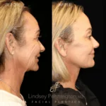 At 5 weeks post op, this active patient in her 70s underwent a deep plane facelift, neck lift, laser resurfacing, and lip lift to restore a look that matches her vibrant, adventurous lifestyle.