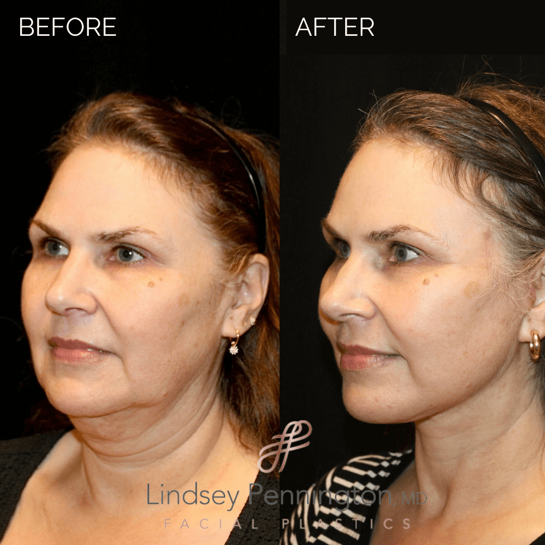 Three months post op, this patient is thrilled with her refreshed, natural-looking transformation following a comprehensive facial rejuvenation.