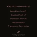 This patient underwent a lateral brow lift, upper and lower blepharoplasty, deep plane facelift, structural neck lift, lip lift, fat grafting, and laser resurfacing to lift and restore facial structure, brighten the eyes, and smooth skin for a natural, refreshed result.