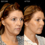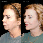 This patient in her 50s underwent a deep plane facelift and neck lift to refine her jawline and profile, achieving a more youthful and balanced appearance.